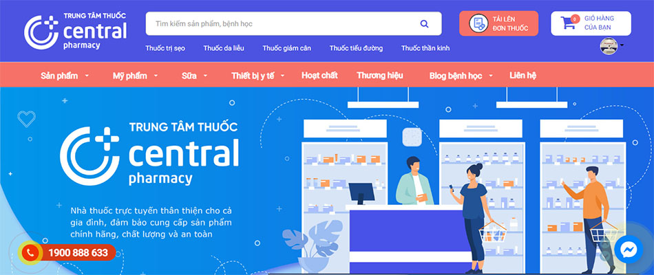 Giao diện trang chủ của Trung Tâm Thuốc gồm các phần: