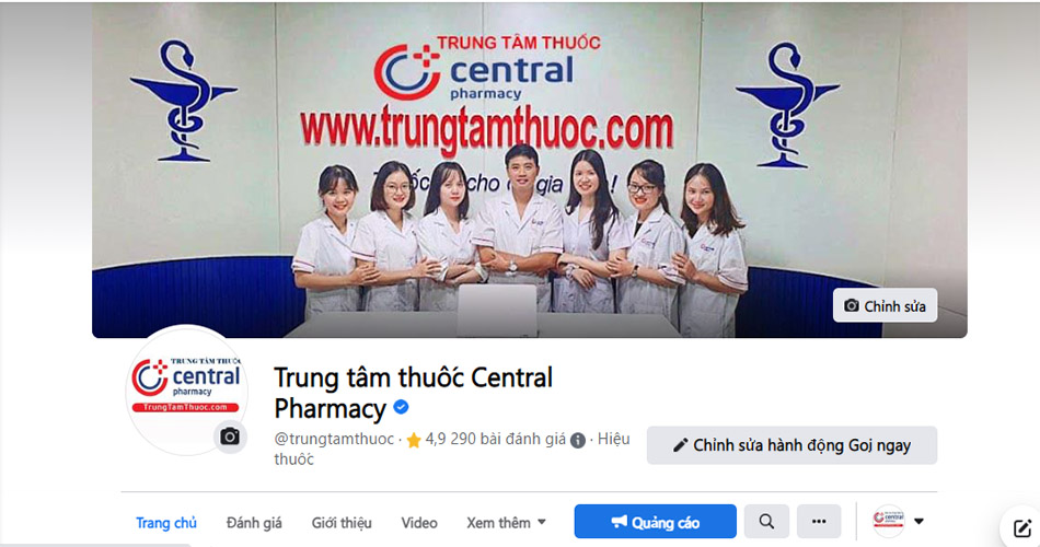 HIện trang Facebook của Trung Tâm Thuốc Central Pharmacy đã có công nhận của Facebook (có tích xanh) nên khách hàng có thể hoàn toàn yên tâm mua hàng qua trang Facebook: https://www.facebook.com/trungtamthuoc