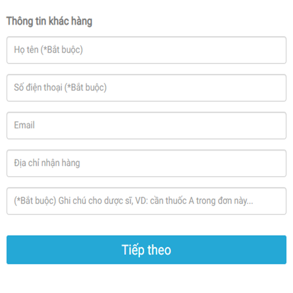 - Bước 3: Điền thông tin: tên, địa chỉ, số điện thoại để đội ngũ dược sĩ có thể tư vấn và gửi đơn hàng đến tận tay bạn.