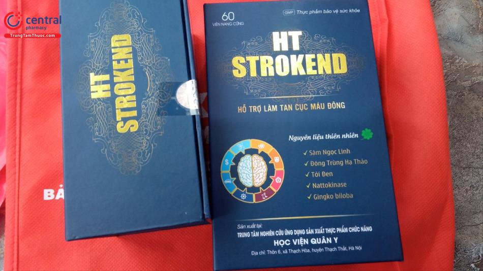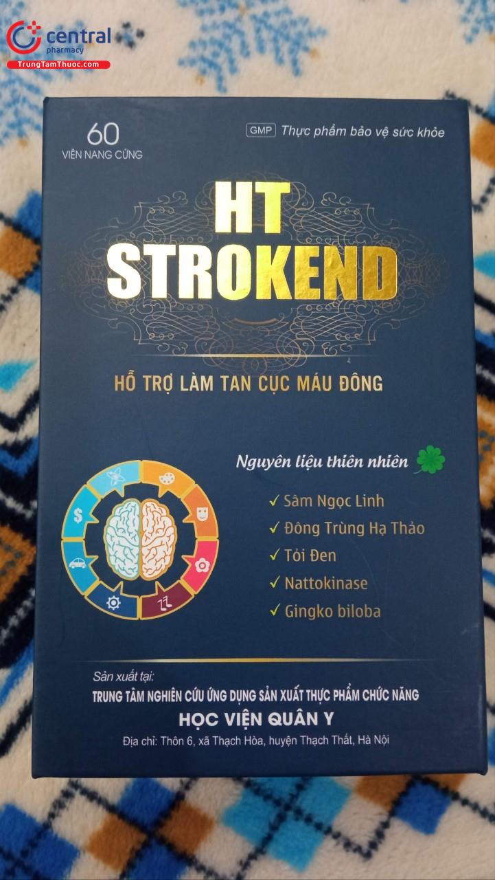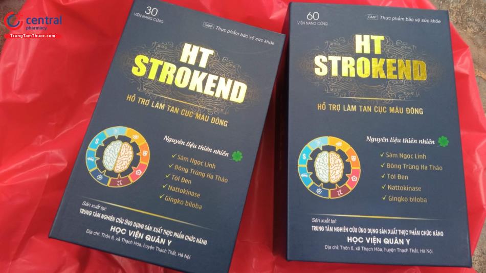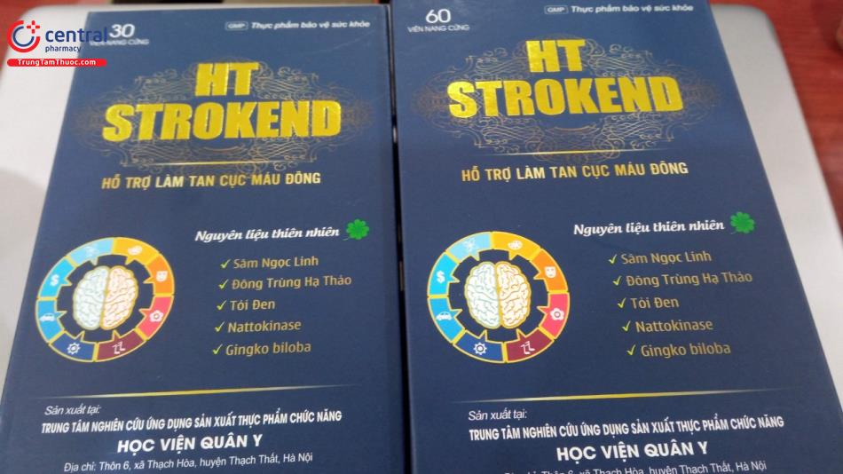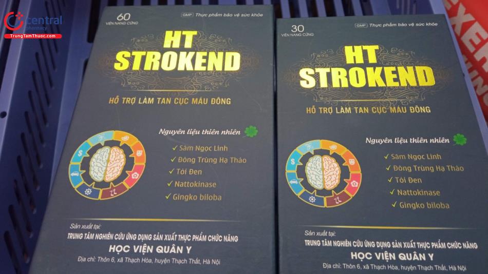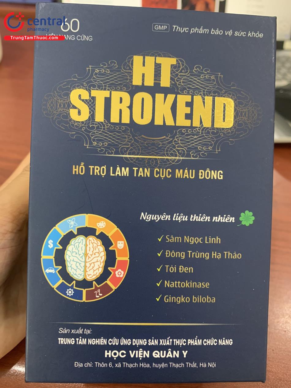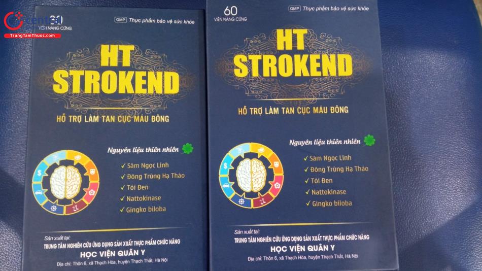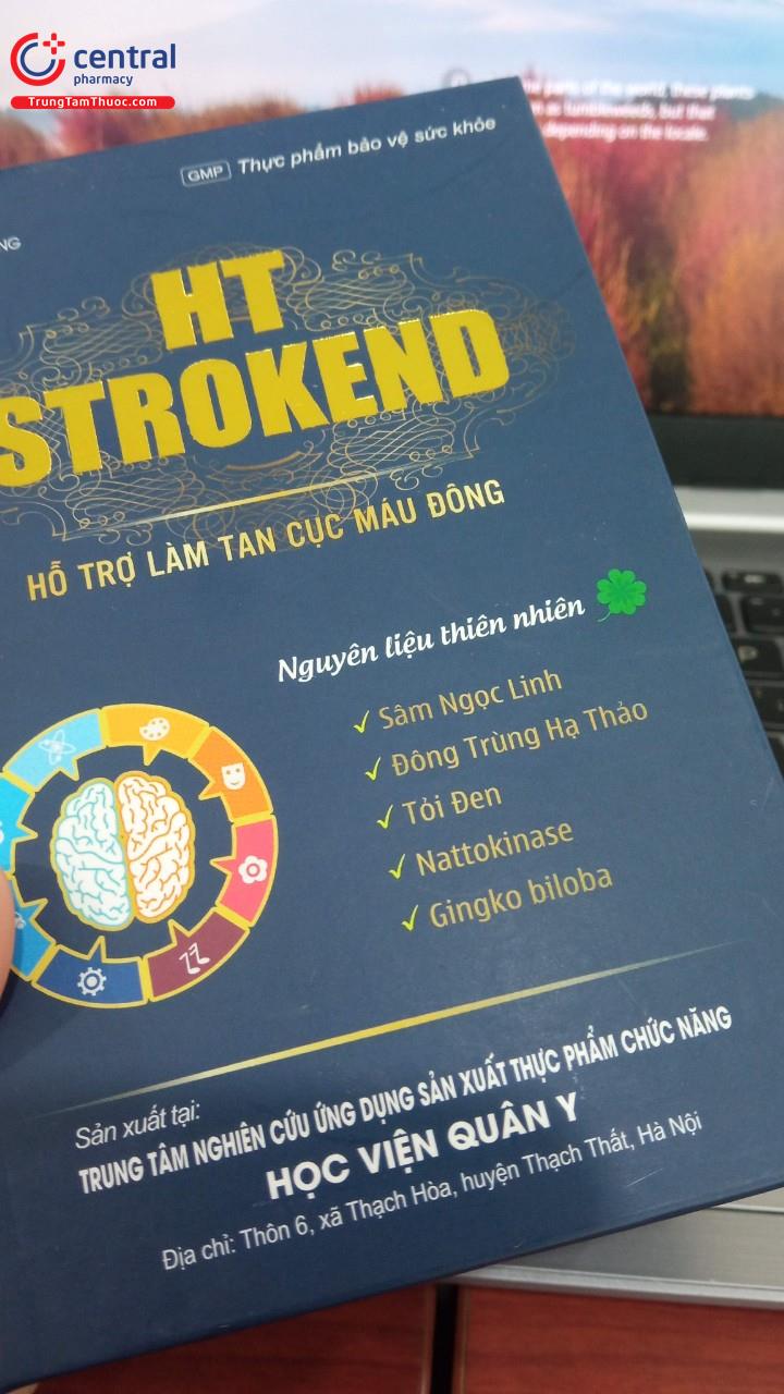 - HT Strokend là sản phẩm của Trung tâm nghiên cứu ứng dụng sản xuất thực phẩm chức năng Học Viện Quân Y, được sản xuất trên dây chuyền công nghê hiện đại, đạt tiêu chuẩn GMP, đảm bảo sản phẩm an toàn, đồng đều, ổn định về chất lượng và các tiêu chuẩn khác đã đăng ký.