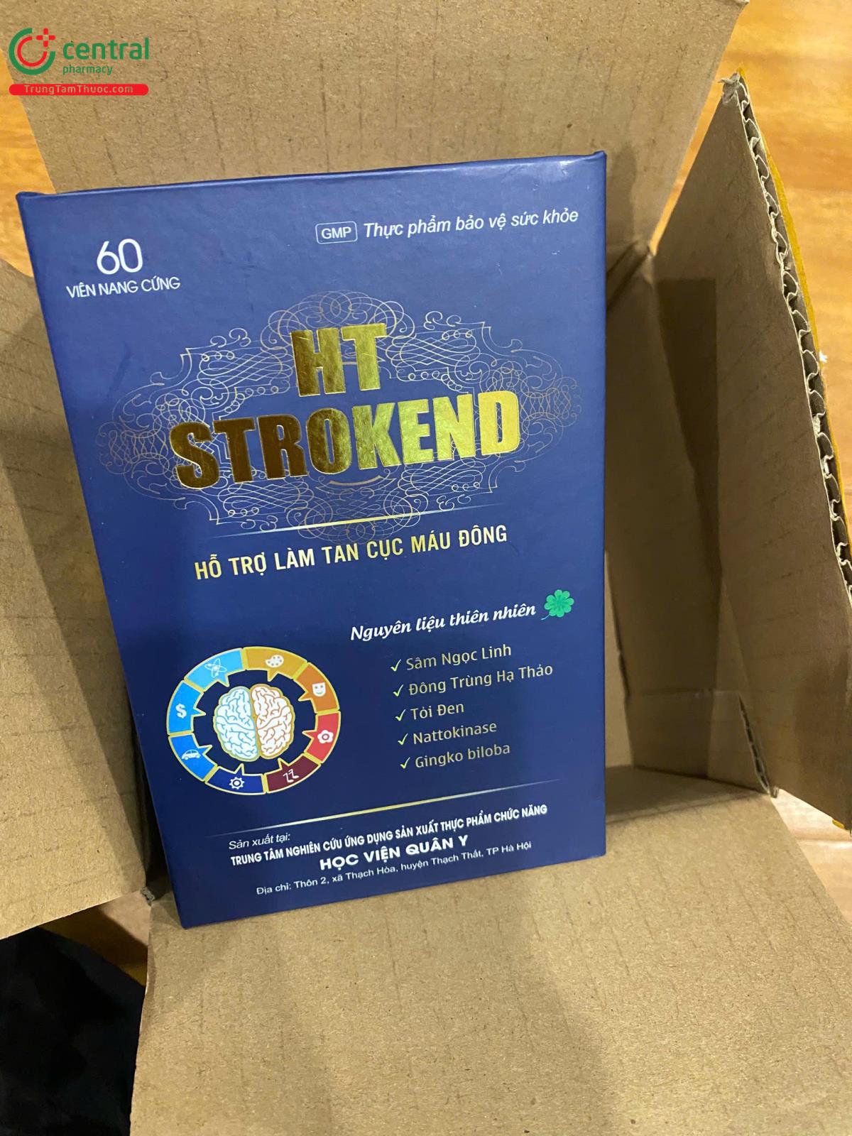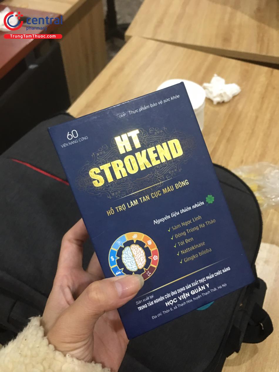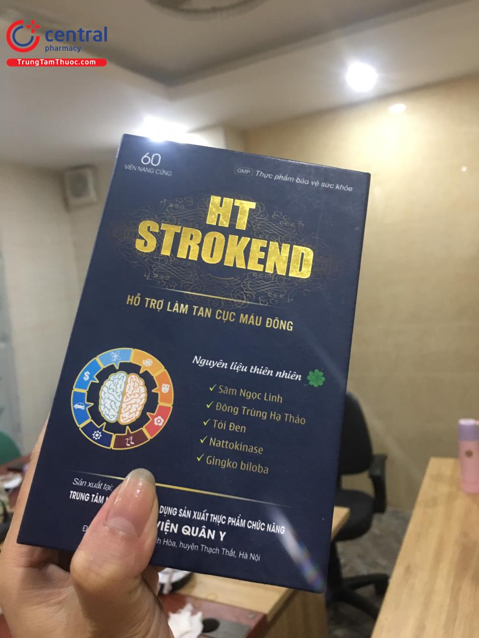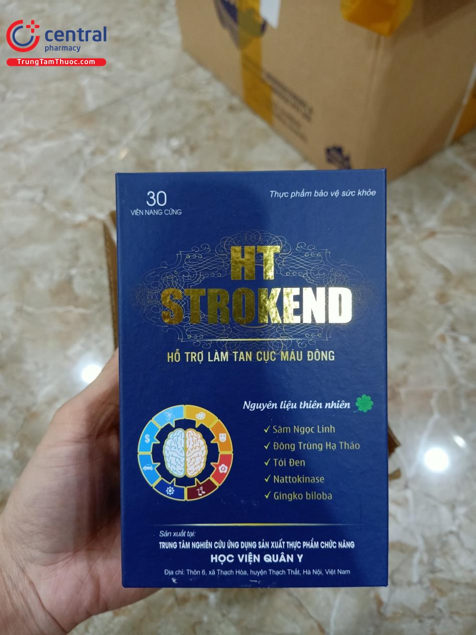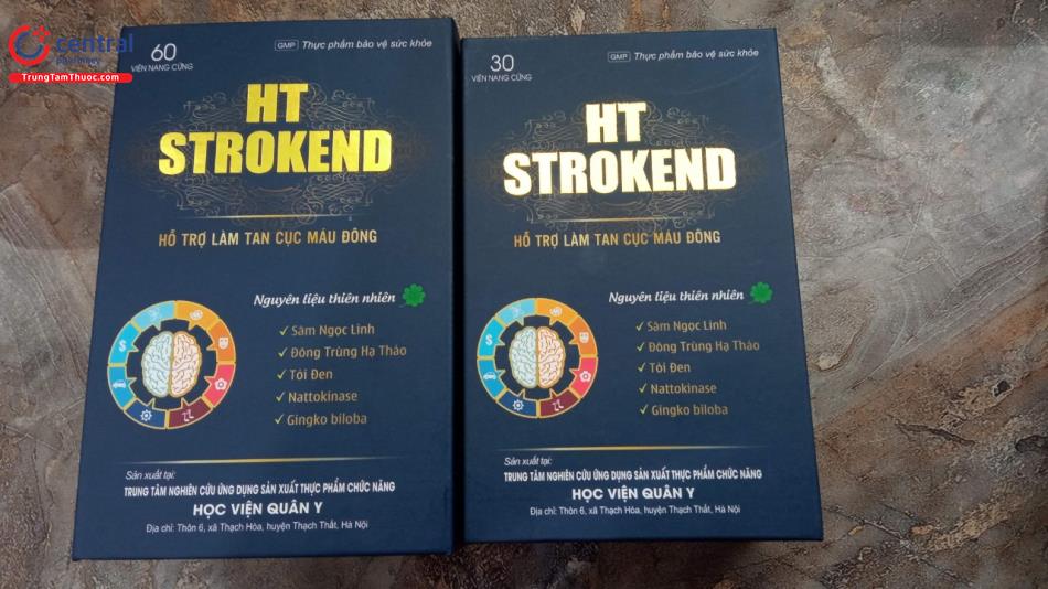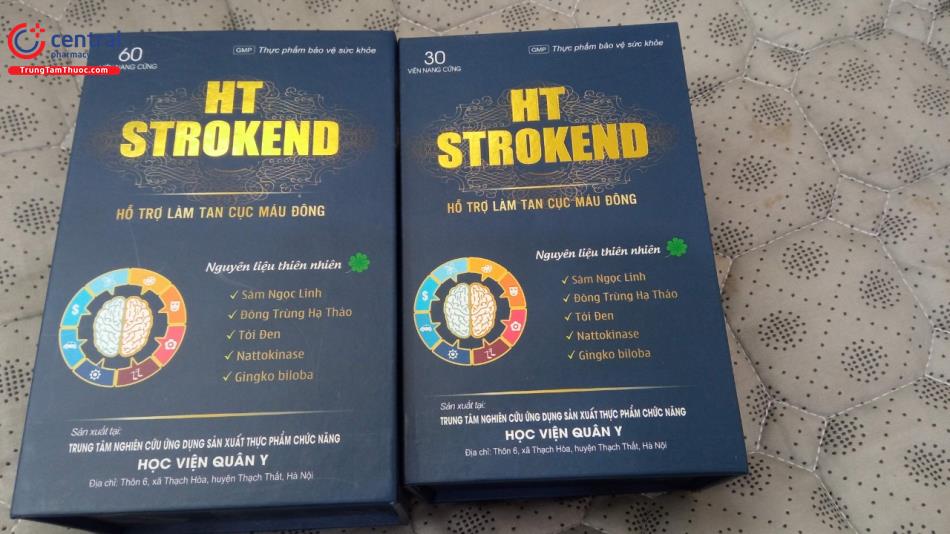- HT Strokend là sản phẩm của Trung tâm nghiên cứu ứng dụng sản xuất thực phẩm chức năng Học Viện Quân Y, được sản xuất trên dây chuyền công nghê hiện đại, đạt tiêu chuẩn GMP, đảm bảo sản phẩm an toàn, đồng đều, ổn định về chất lượng và các tiêu chuẩn khác đã đăng ký.