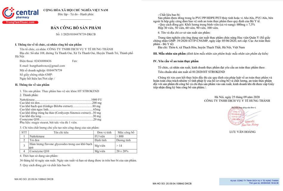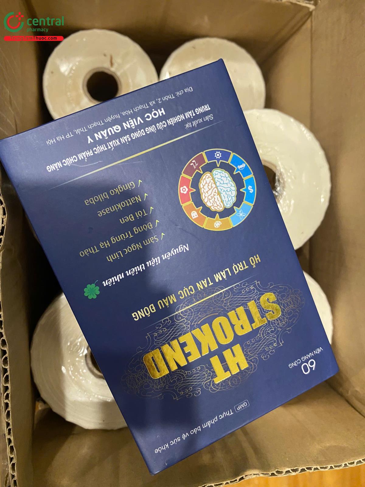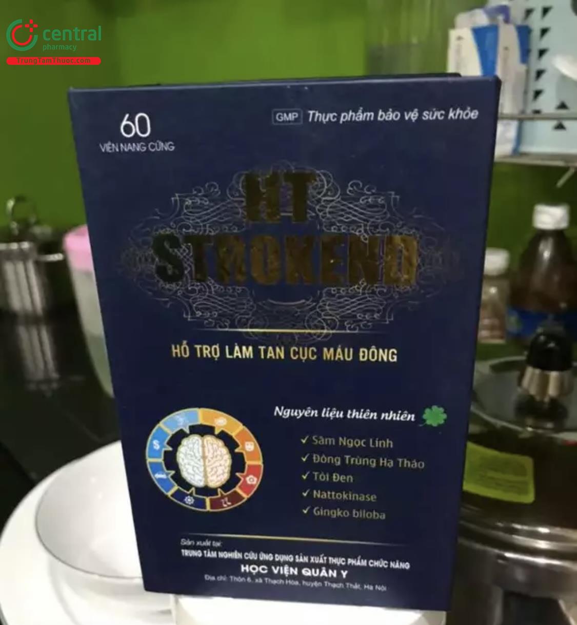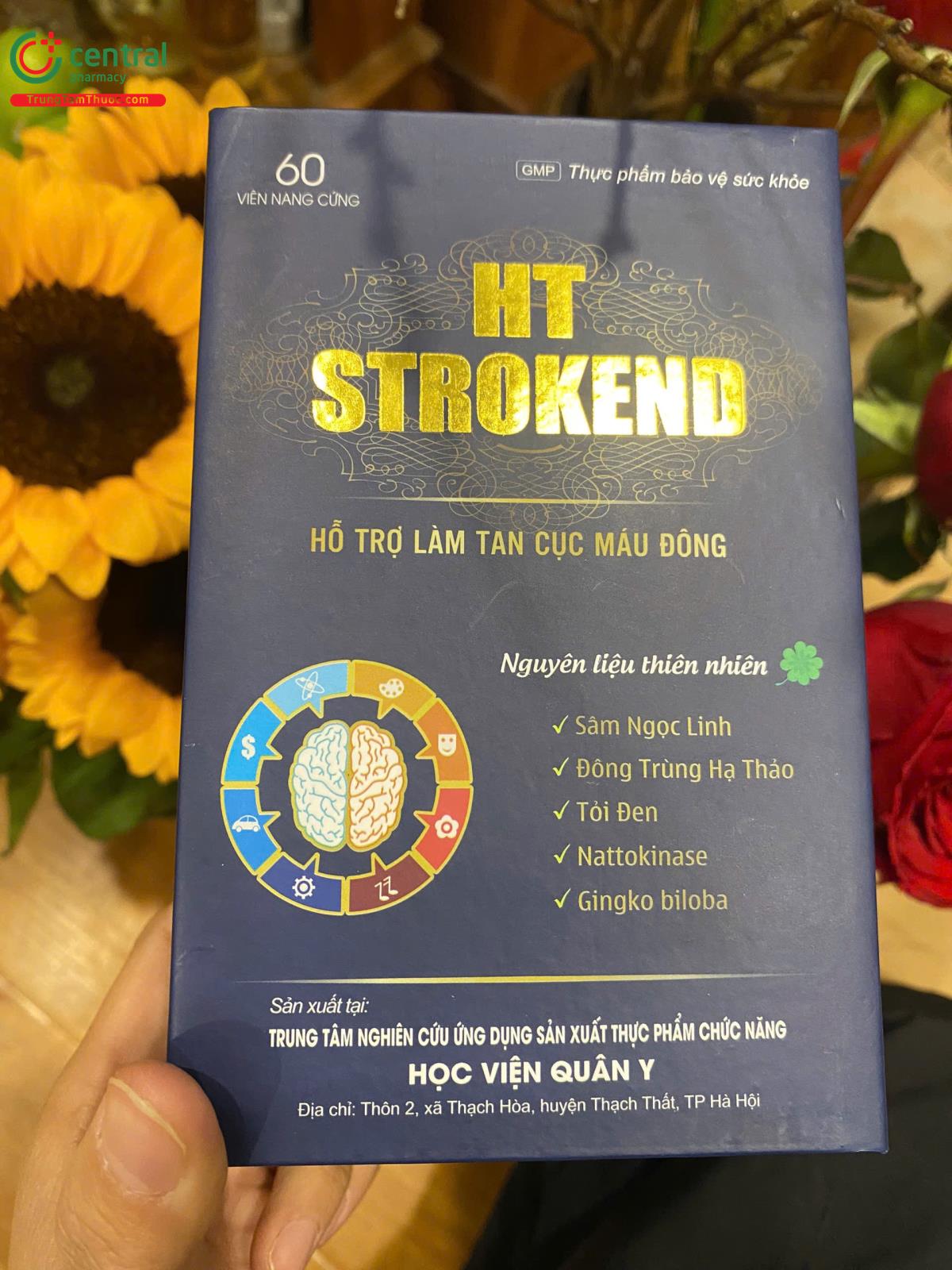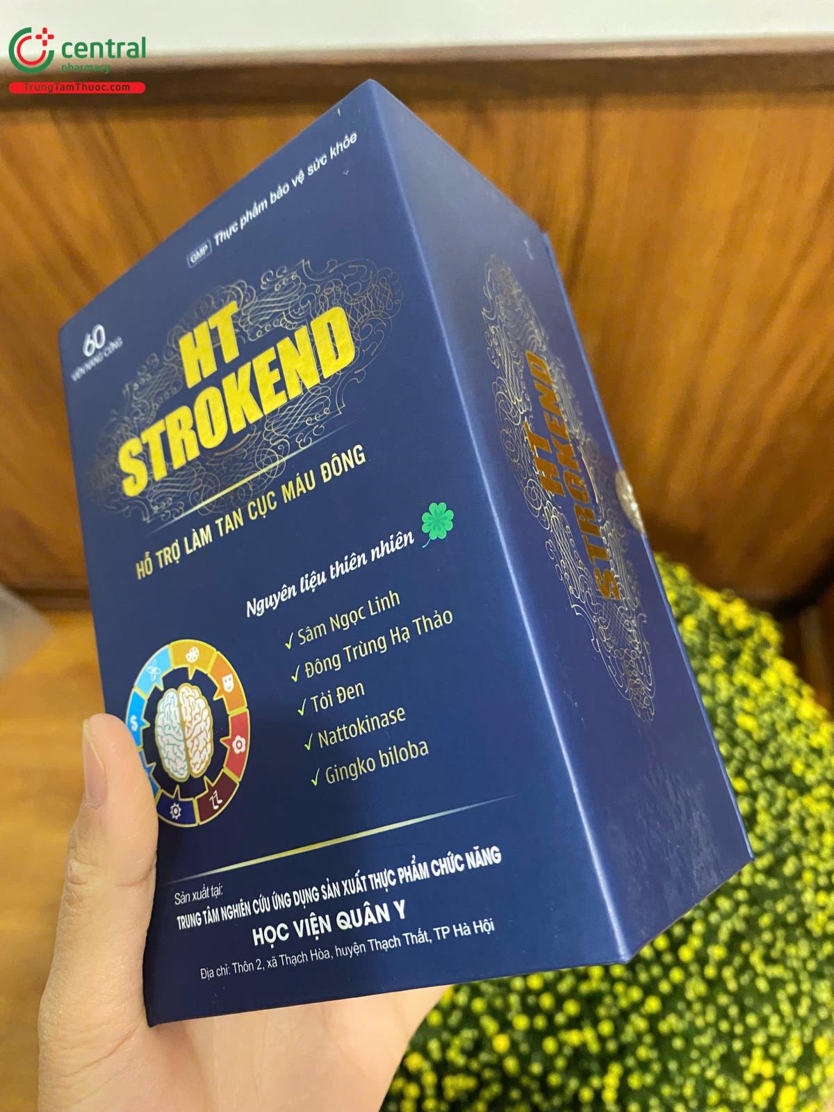 - HT Strokend là sản phẩm của Trung tâm nghiên cứu ứng dụng sản xuất thực phẩm chức năng Học Viện Quân Y, được sản xuất trên dây chuyền công nghê hiện đại, đạt tiêu chuẩn GMP, đảm bảo sản phẩm an toàn, đồng đều, ổn định về chất lượng và các tiêu chuẩn khác đã đăng ký.