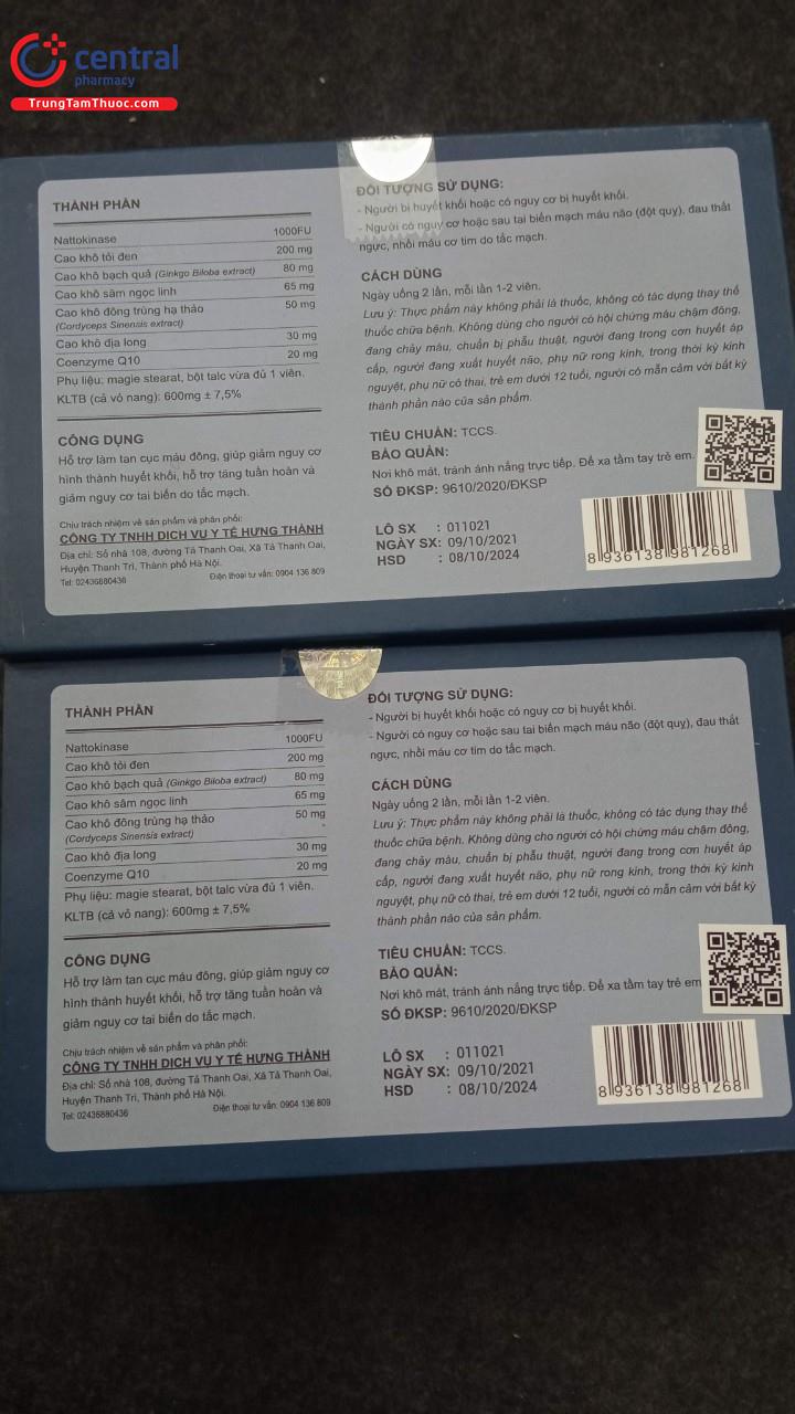 | Hoạt chất | Coenzym Q10 (Ubidecarenone), Nattokinase |