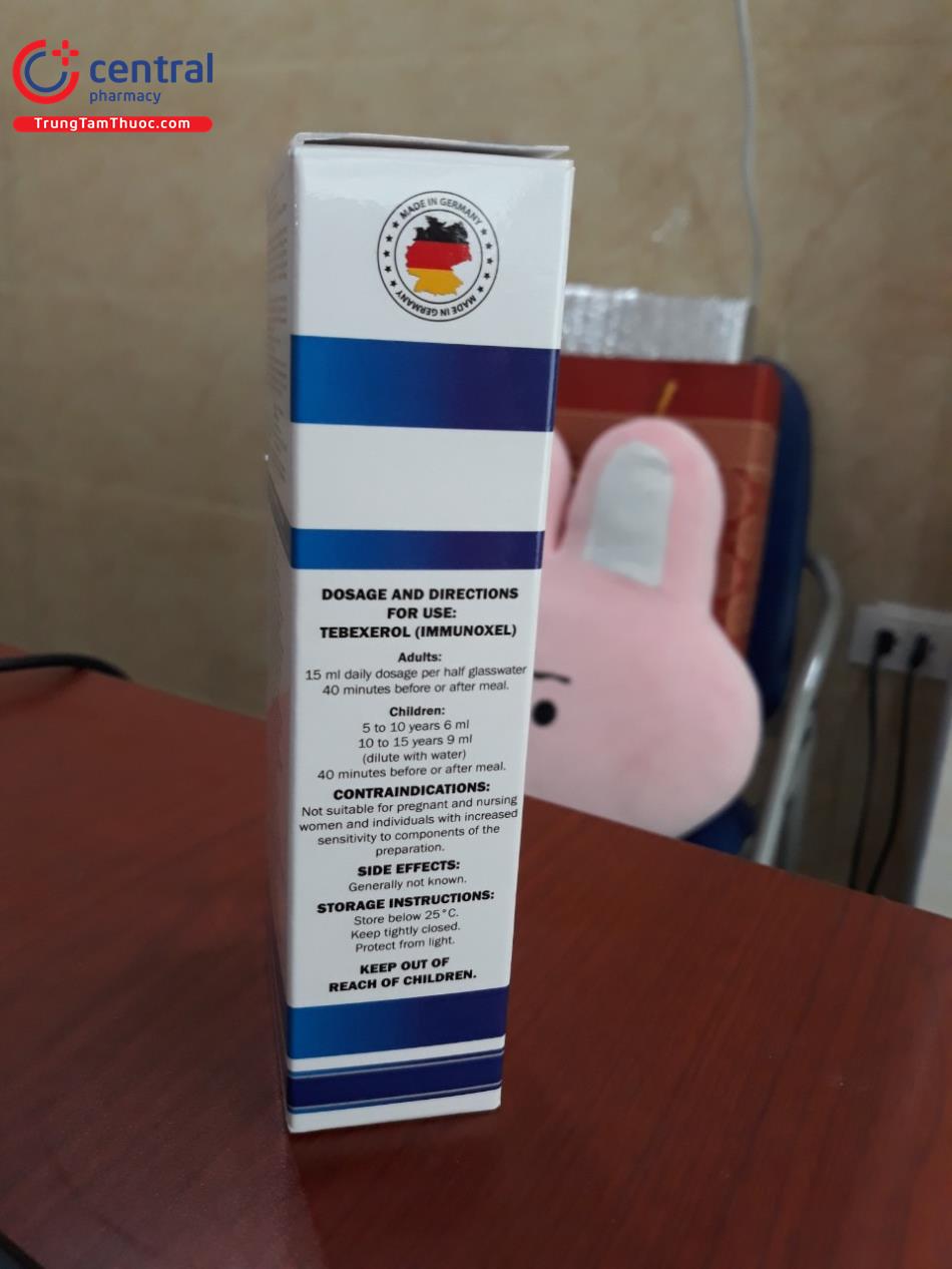 Tebexerol Immunoxel được nhập khẩu nguyên chai từ Đức và được nhập khẩu ĐỘC QUYỀN tại Việt Nam và khu vực Đông Nam Á bởi Công ty TNHH Hà Nội IEC.