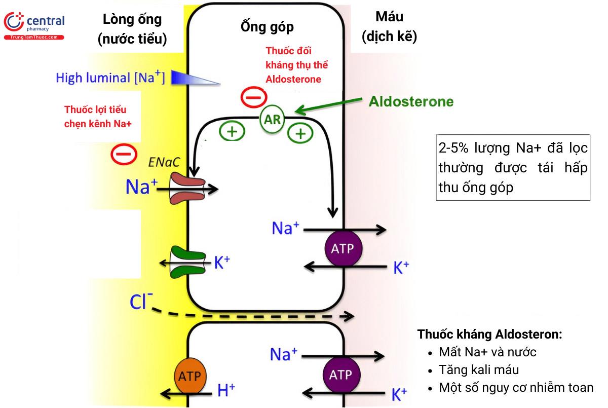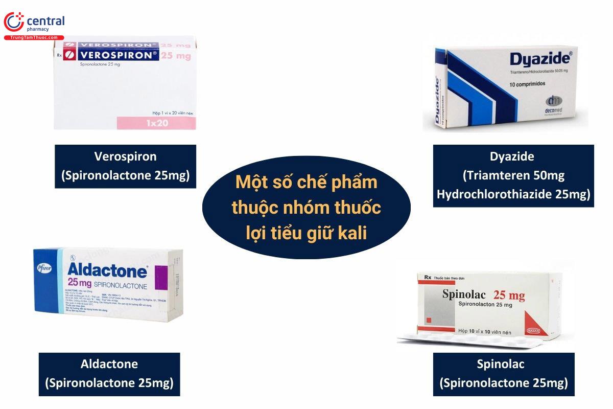 - Thuốc lợi tiểu giữ K+ máu: thuốc lợi tiểu chẹn kênh natri và thuốc đối kháng với thụ thể mineralocorticoid (thuốc kháng Aldosteron)