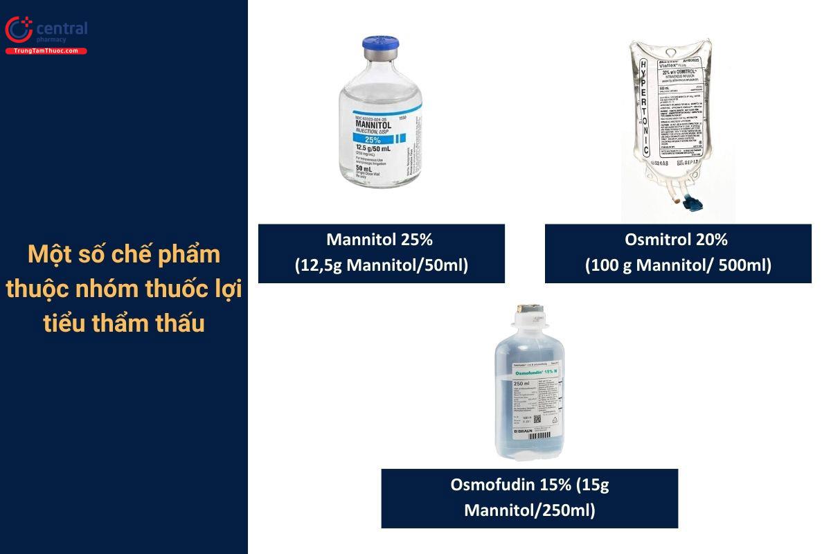 Dung dịch Mannitol 10-20% truyền nhỏ giọt tĩnh mạch. VD: Osmitrol, Osmofudin 20%,...