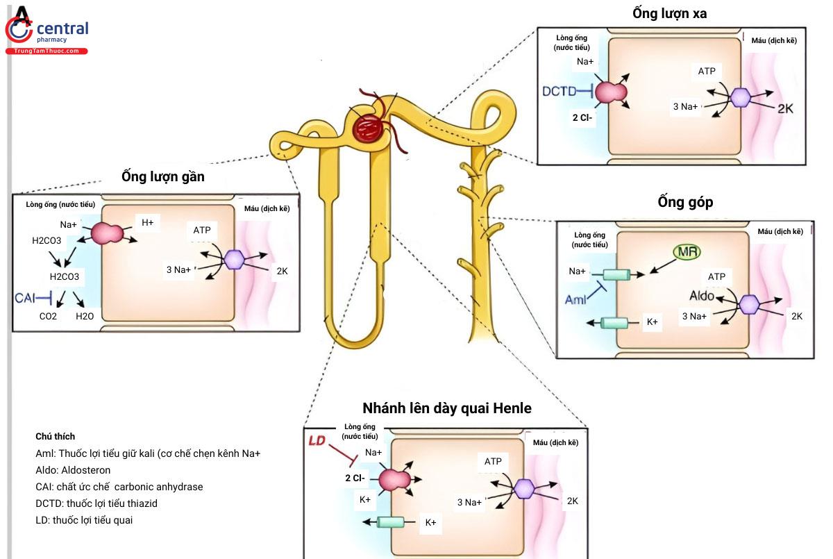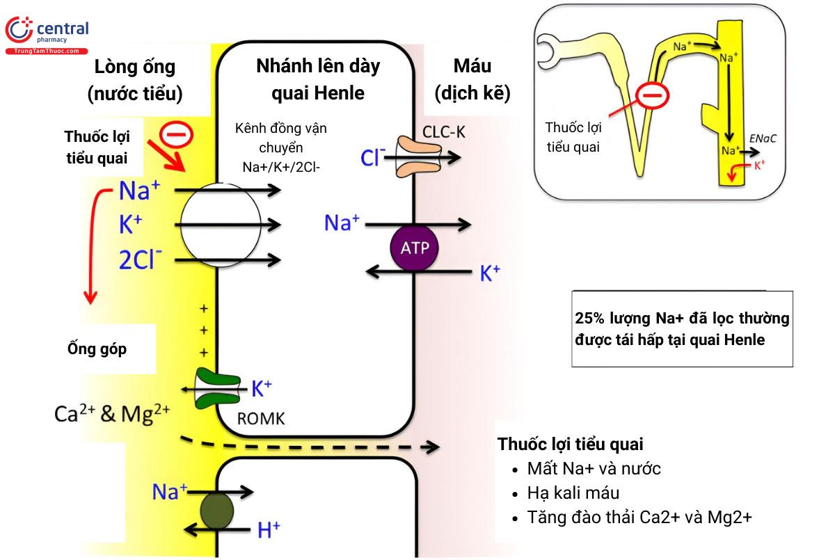 - Thuốc lợi tiểu quai: nhánh lên dày quai Henle