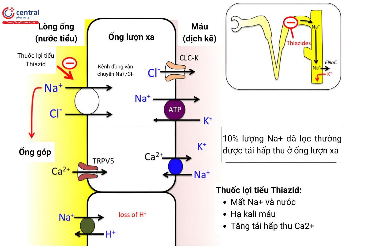 - Thuốc lợi tiểu thiazid: ống lượn xa