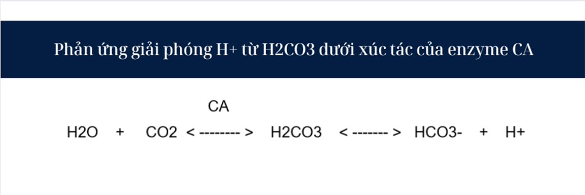 Trong tế bào ống thận, enzyme carbonic anhydrase (CA) xúc tác cho việc giải phóng ion H+ theo phản ứng sau: