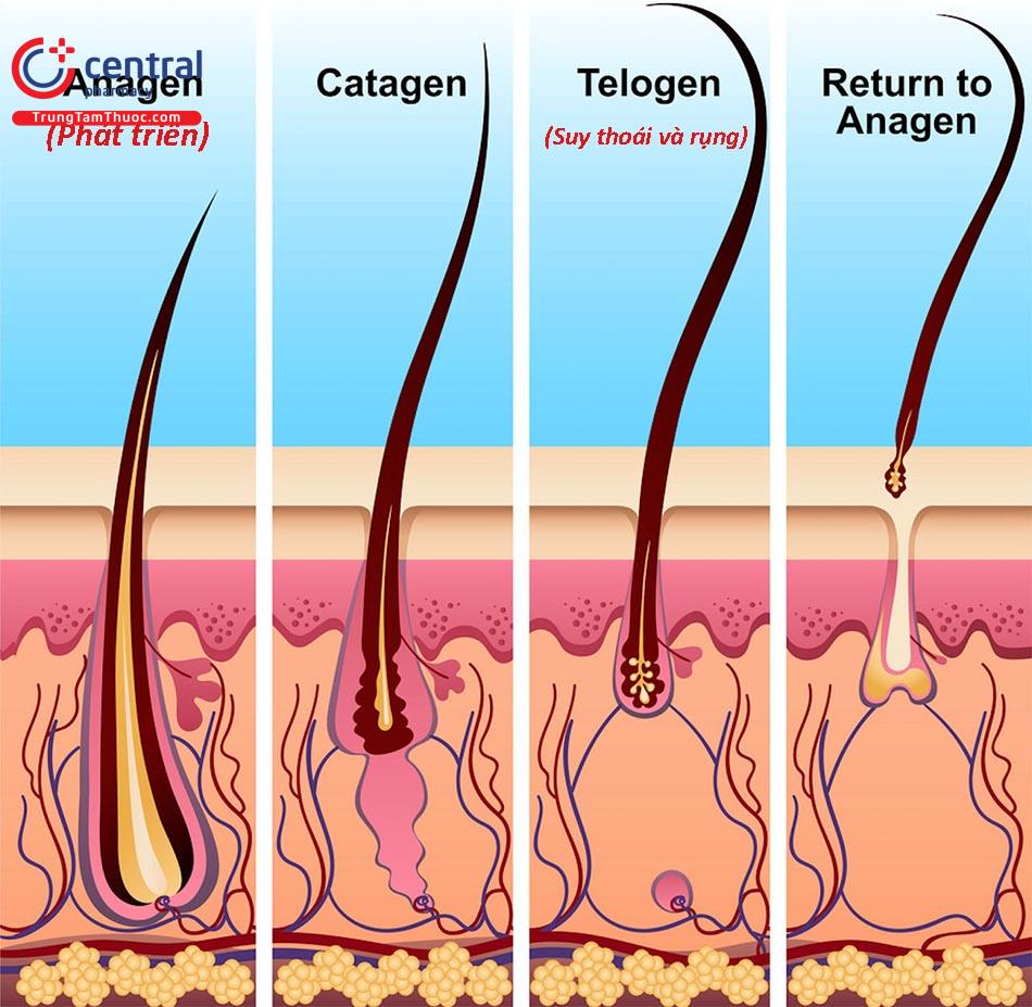 Thuốc ngăn rụng tóc Minoxidil có khả năng thúc đẩy sự tăng trưởng của các tế bào sừng, kích thích và kéo dài thêm giai đoạn phát triển của tóc, giúp tóc con mọc nhanh hơn, mọc dài hơn. Bên cạnh đó, minoxidil còn có tác dụng giãn mạch máu nhỏ, kích thích nang tóc phát triển khỏe mạnh hơn, giúp quá trình mọc tóc diễn ra nhanh hơn, cải thiện tình trạng rụng tóc nhiều, hói da đầu.