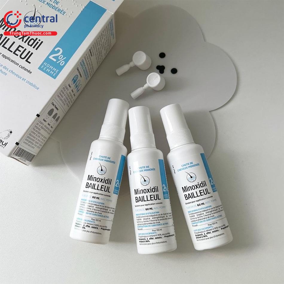 - Minoxidil Bailleul 2% có dạng xịt tại chỗ, giúp thuốc thấm vào da đầu tốt hơn, phát huy tác dụng nhanh hơn, đồng thời việc hấp thu tại chỗ giúp làm giảm tác dụng phụ toàn thân của minoxidil.