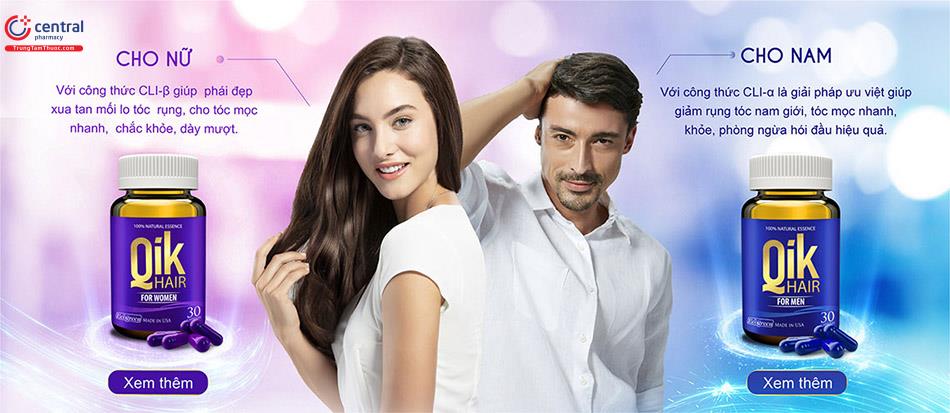 Thuốc mọc tóc cho nữ Qik Hair For Women dành cho nữ giới trên 18 tuổi có tóc rụng nhiều, yếu, hư tổn; còn thuốc mọc tóc cho nam Qik Hair dành cho đàn ông trên 18 tuổi bị rụng tóc nhiều, hói đầu.