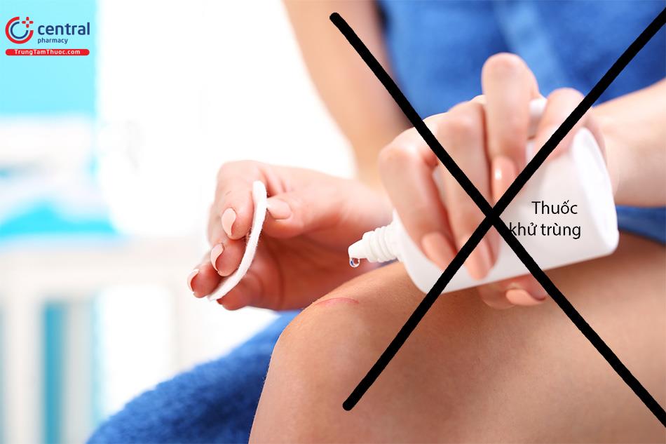 Không sử dụng thuốc khử trùng thay cho thuốc sát trùng vì nồng độ cao hơn, có thể gây hại, chỉ dùng trên bề mặt chứ không làm sạch da.