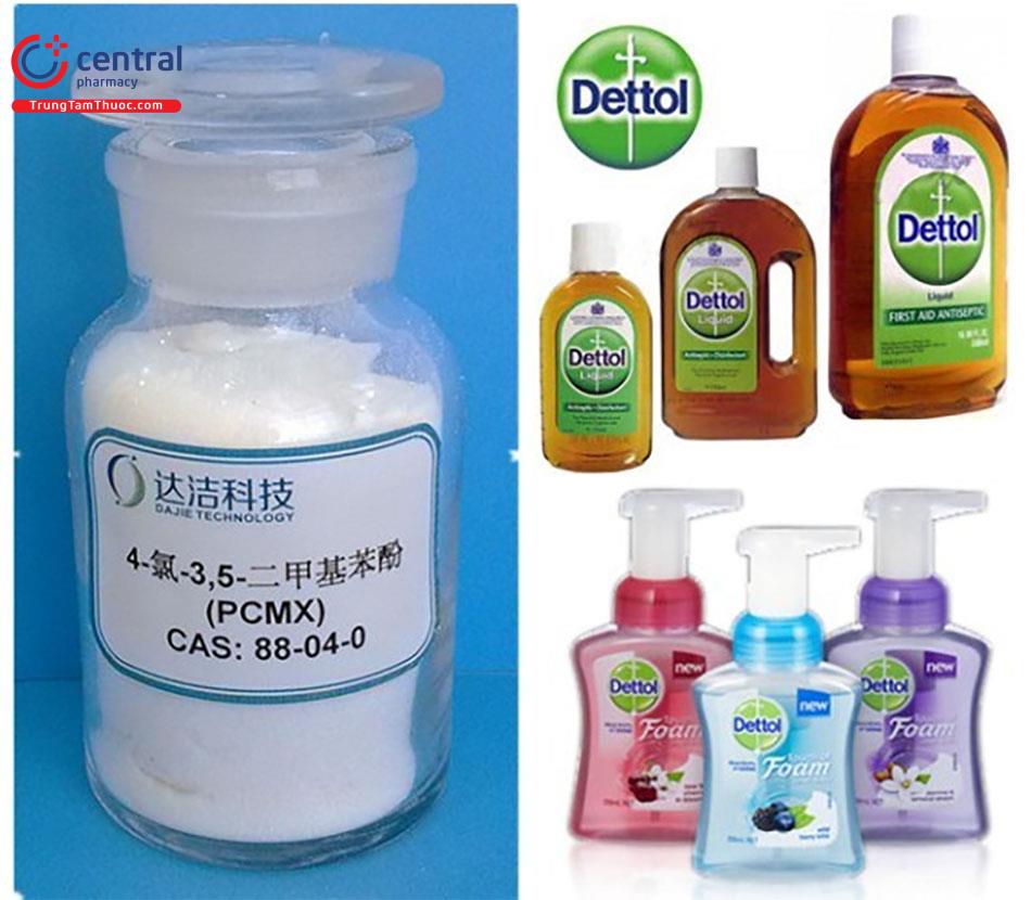 | Chloroxylenol | Dẫn chất của Clo | Vi khuẩn gram dương và gram âm nhưng P.aeruginosa và nhiều loại nấm mốc có khả năng kháng cao | Tác dụng chậm, không có tác dụng với bào tử | Xà phòng và dung dịch rửa vết thương, vết bỏng… | Nước sát trùng, nước súc miệng, nước rửa tay khô Dettol |