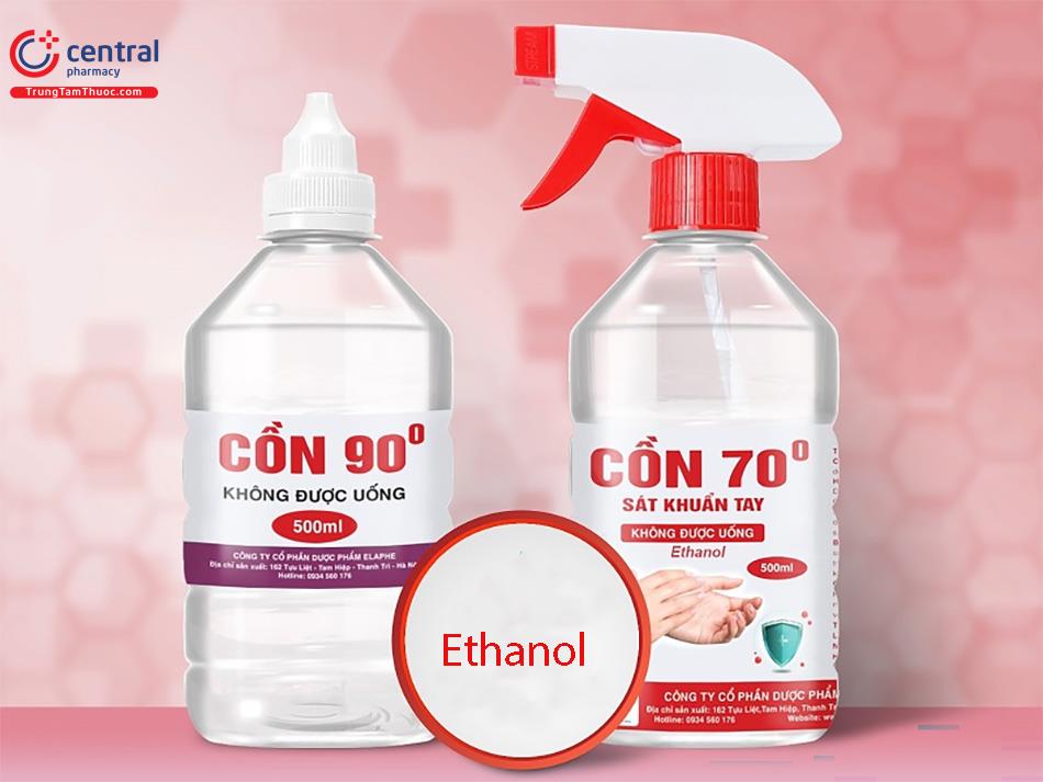 | Ethanol | Cồn | Vi khuẩn sinh dưỡng (bao gồm cả vi khuẩn mycobacteria), virus và nấm | Không có tác dụng diệt khuẩn, nhanh bay hơi | Khử trùng da, hạn chế tình trạng nhiễm trùng hoặc hoại tử mô cơ | Cồn y tế 70 độ |