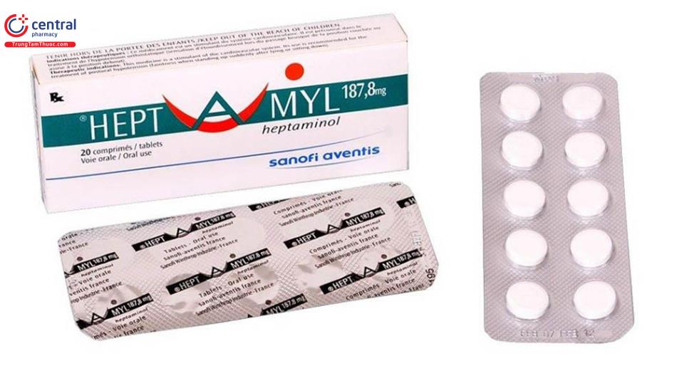 - Heptaminol có trong thuốc Heptamyl là hoạt chất được sử dụng rộng rãi trong hạ huyết áp thế đứng, được kê đơn phổ biến trong nhiều trường hợp.